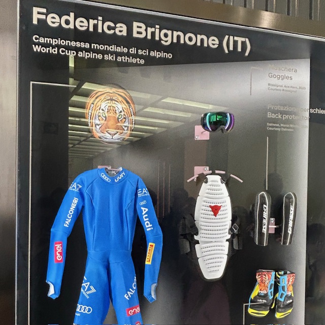 トリエンナーレでは、オリンピックを象徴するスペースの一つである「カーサ・イタリア」があり、ここはイタリア代表チームの公式拠点であるだけでなく、スポーツ、芸術、文化が互いに響き合う、一般公開された空間だった。ここでは、オリンピックの世界を肌で感じることができ、イタリア代表チームの公式ユニフォームや、偉大なフェデリカ・ブリニョーネ選手のスキーウェア、オリンピック聖火、ボブスレーのそりなど、大会の歴史にまつわる象徴的な品々を間近で見ることができ、ウィンタースポーツの本質を手に取るように感じることができた。